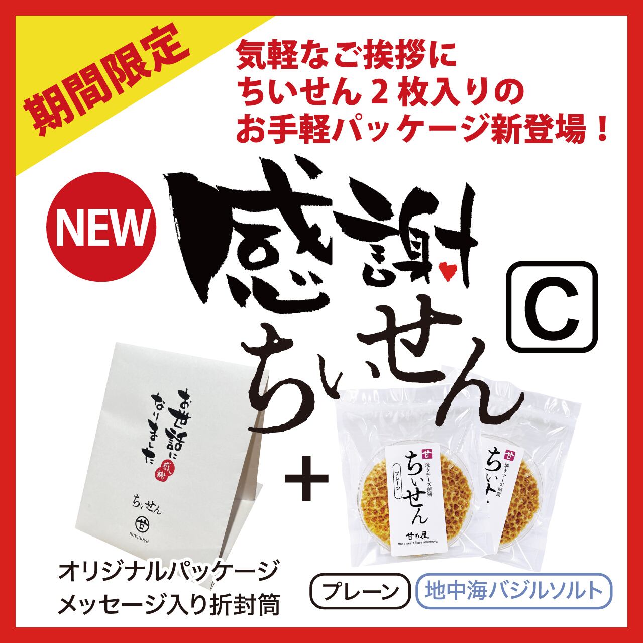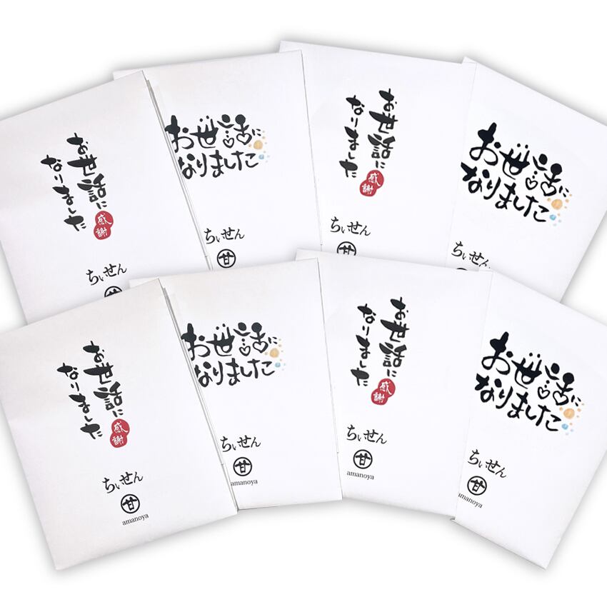感謝の気持ちを伝えるご挨拶に、メッセージ入り折封筒「ちいせん」はいかがでしょうか。甘乃屋オリジナル、お手軽パッケージが新登場!
